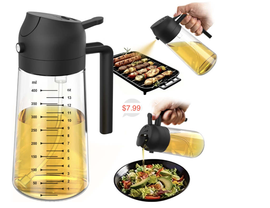 20% off TrendPlain 16oz/470ml Glass Olive Oil Sprayer for Cooking – 2 in 1 Olive Oil Dispenser Bottle for Kitchen Gadgets and Air Fryer Accessories, Salad, BBQ – Black