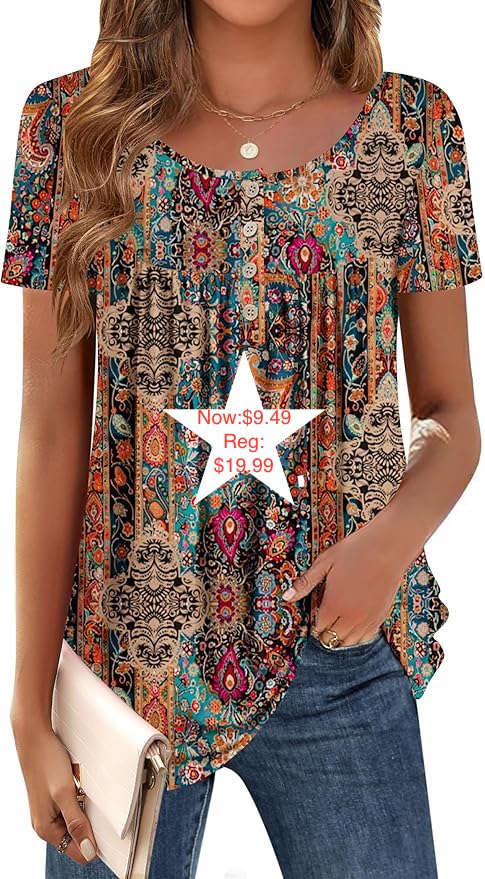 53% off on Zeagoo Women Tunic Tops Dressy Casual Summer Short Sleeve Shirts Floral Loose Fit Pleated Boho Top S-XXL