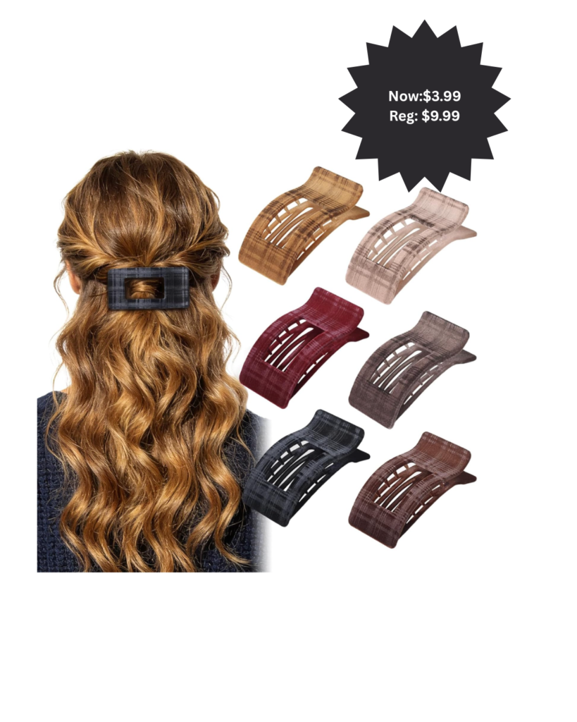 Upgrade your hair game with this 6‑pack of Flat Claw Clips — now a stylish 60% OFF! Designed especially for thin and fine hair, these French‑style plaid clips lay flat for all‑day comfort, whether you’re wearing your hair up, half‑up, or clipped back. Lightweight, strong, and gentle on hair, they hold securely without pulling or slipping.