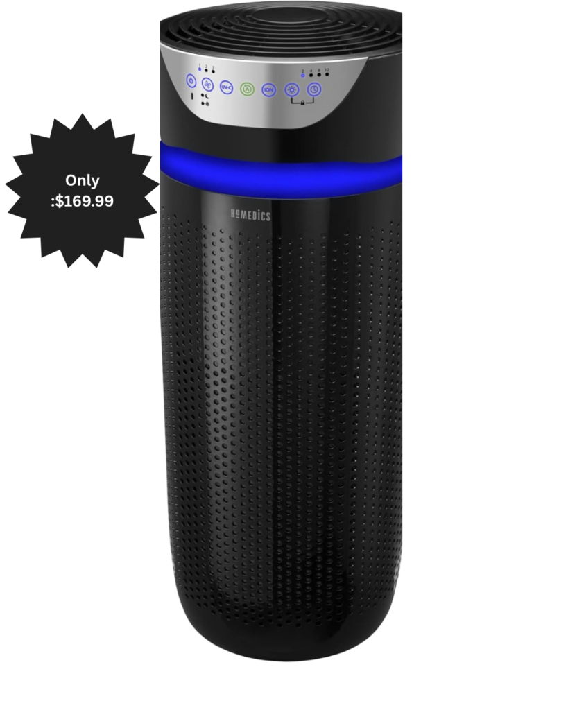 Breathe cleaner, fresher air with the Homedics 5‑in‑1 UV‑C Air Purifier — now $10 OFF! Covers up to 1,593 sq ft with a 360° HEPA filter, UV‑C light, 5 speed settings, and essential oil pads for optional aromatherapy. Perfect for bedrooms, living rooms, and large spaces. Includes a built‑in timer for convenient all‑day use.