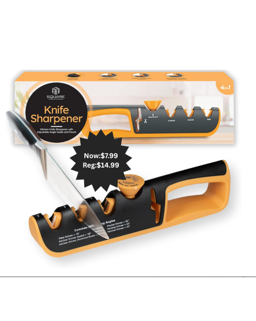 Upgrade your kitchen tools with the HSQUARE 4‑in‑1 Knife Sharpener — now a huge 47% OFF! This professional pull‑through sharpener features four sharpening stages and an adjustable angle guide, giving your kitchen knives, chef knives, pocket knives, and even scissors a razor‑sharp edge in seconds. Safe, easy to use, and perfect for home cooks who want fast, reliable results.