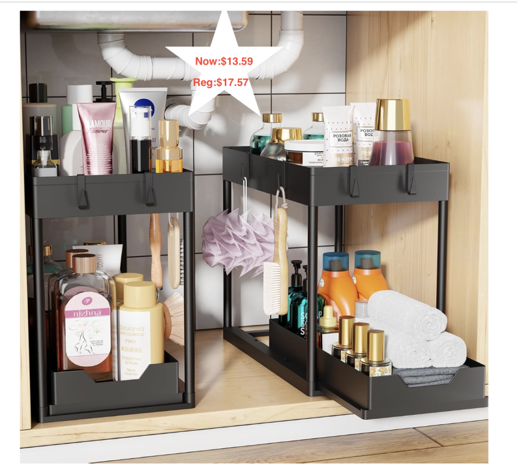 Simple Trending Under Sink Organizer 2 Pack, Sink Pull-Out Sliding Storage Cabinet, 2-Tier Under Shelf Organizer for Kitchen Bathroom, Black