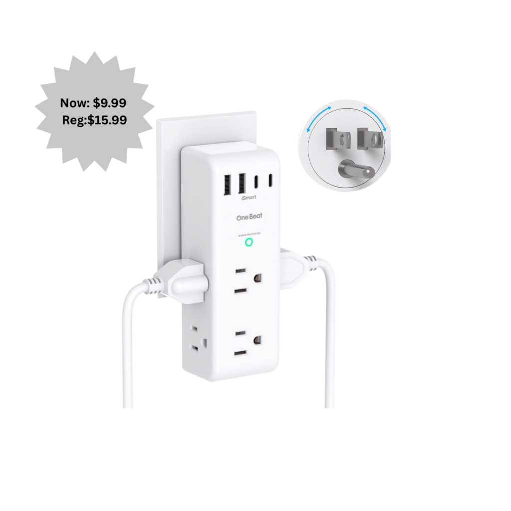 Power up your space with this 38% OFF Surge Protector Outlet Extender! Featuring a rotating plug, 6 AC outlets, and 4 USB ports (including 2 USB‑C), this 3‑sided power strip gives you all the charging flexibility you need at home, in the office, or while traveling. With 1800J surge protection and extra‑wide spacing for bulky adapters, it keeps your devices safe and organized. A smart, compact upgrade for any room — grab this deal before it’s gone!